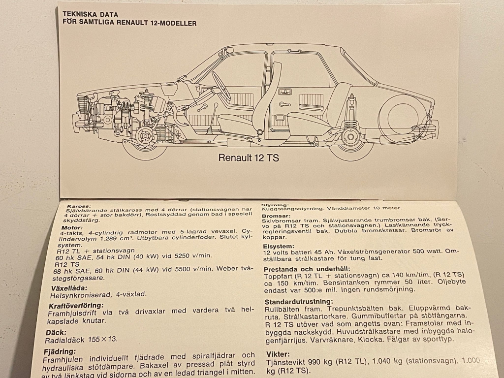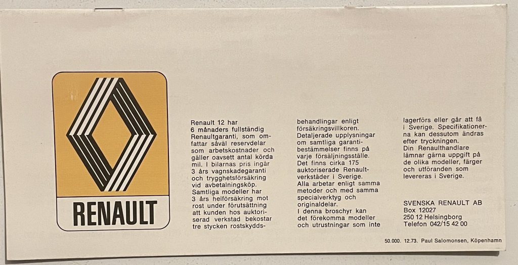 1974 Renault 12 Fransa Broşürü