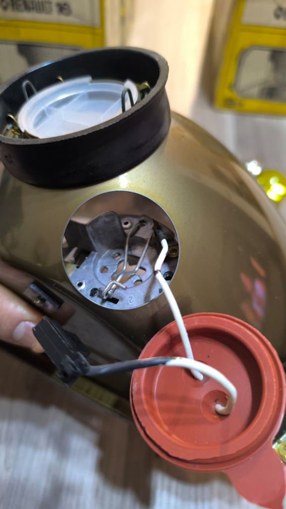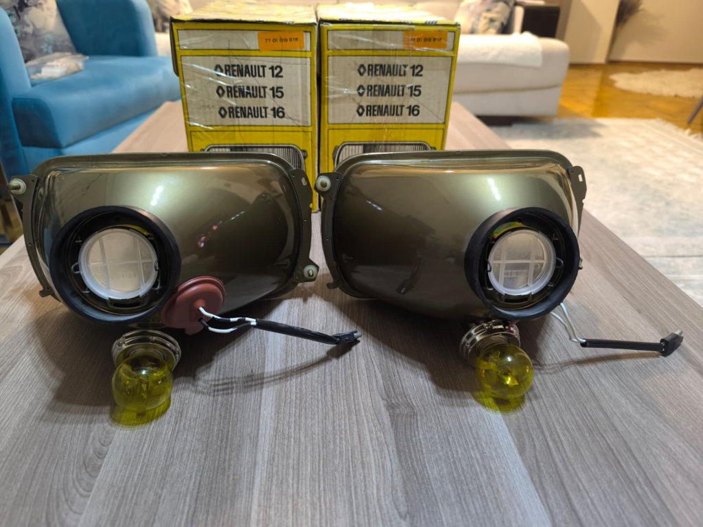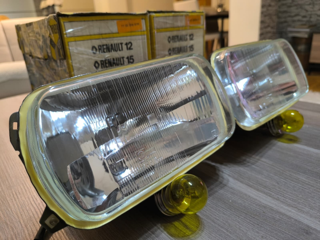 Ve işte sonuç. Hurdalıktan alınan, kabloları eksik o yorgun Cibié farlar, artık 1973-1976 Renault 12 TS efsanesinin gözleri olarak yeniden ışıldıyor.