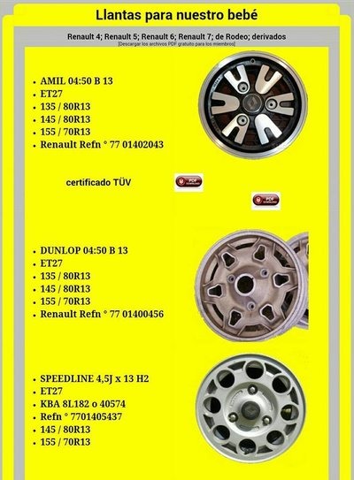 | Amil / Dunlop | 4.5J x 13 | ET 27 | 155/70 R13 |