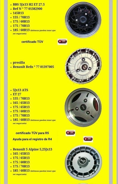 | BBS | 5J x 13 | ET 27.5 | 155/70 R13 |